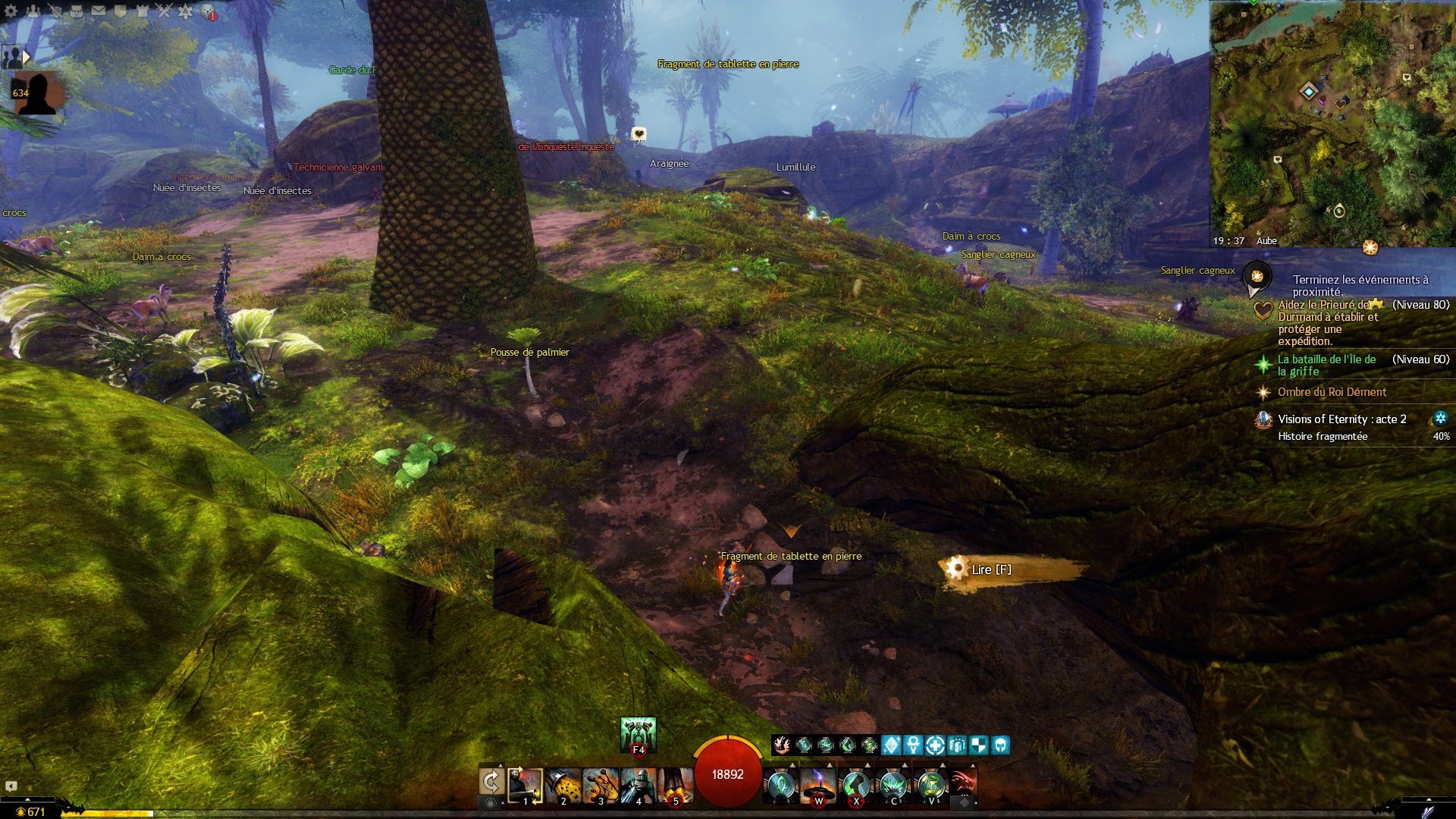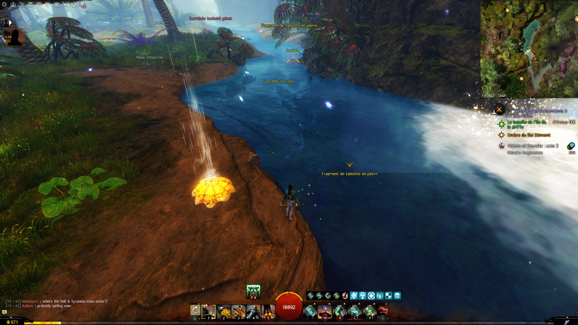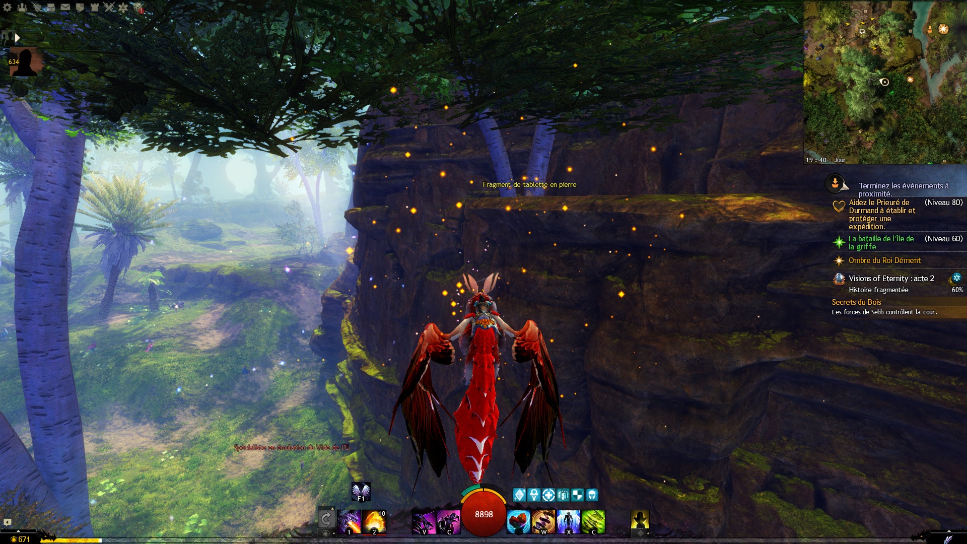 - dans le Bois étoilé, sur un îlot flottant au nord-ouest du Point de passage de l’expédition du Prieuré, interagir avec la Tablette en pierre usée