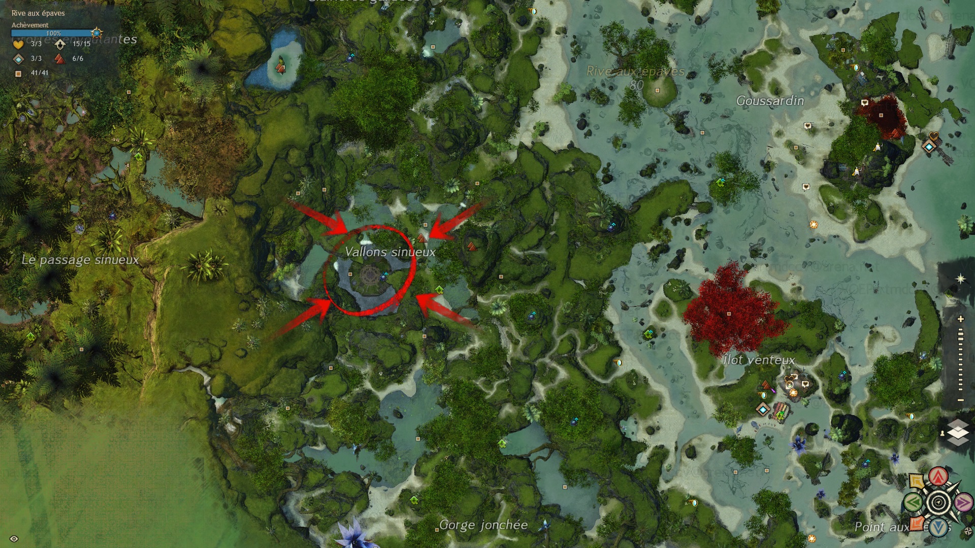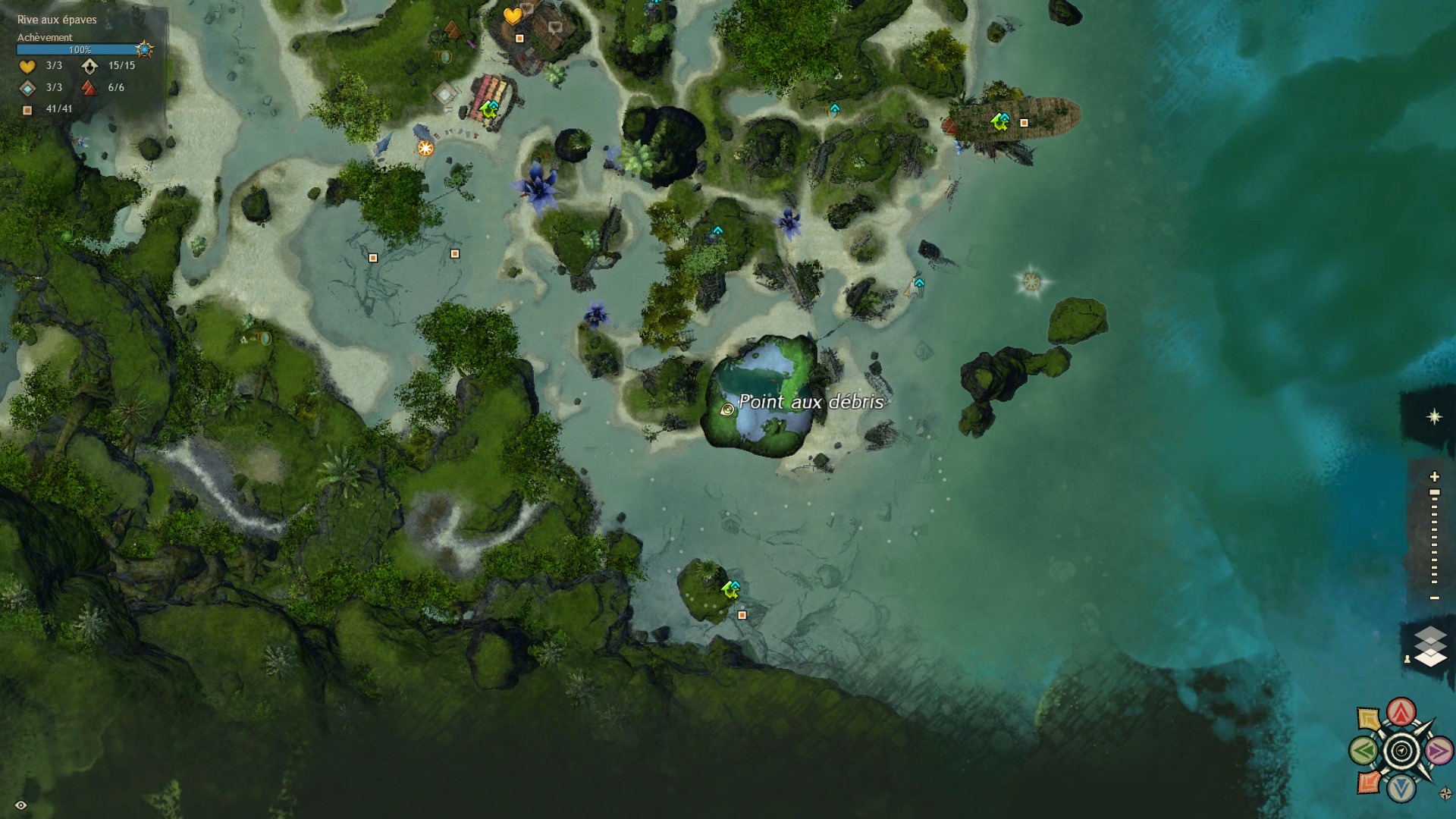 - Atteindre le point le plus bas de la Rive aux épaves.