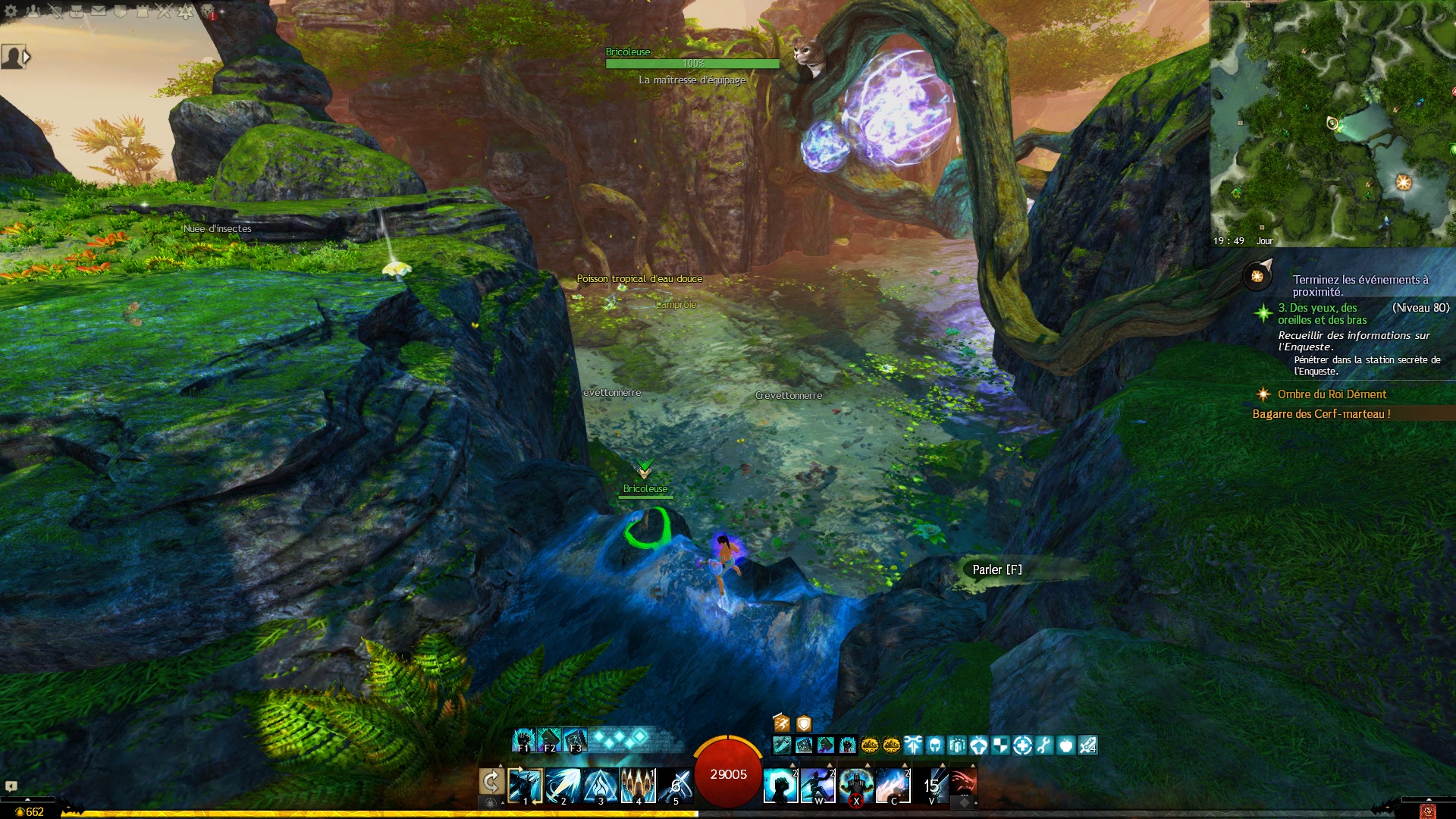 Au niveau des Arches scintillantes, interagir avec 30 étangs.