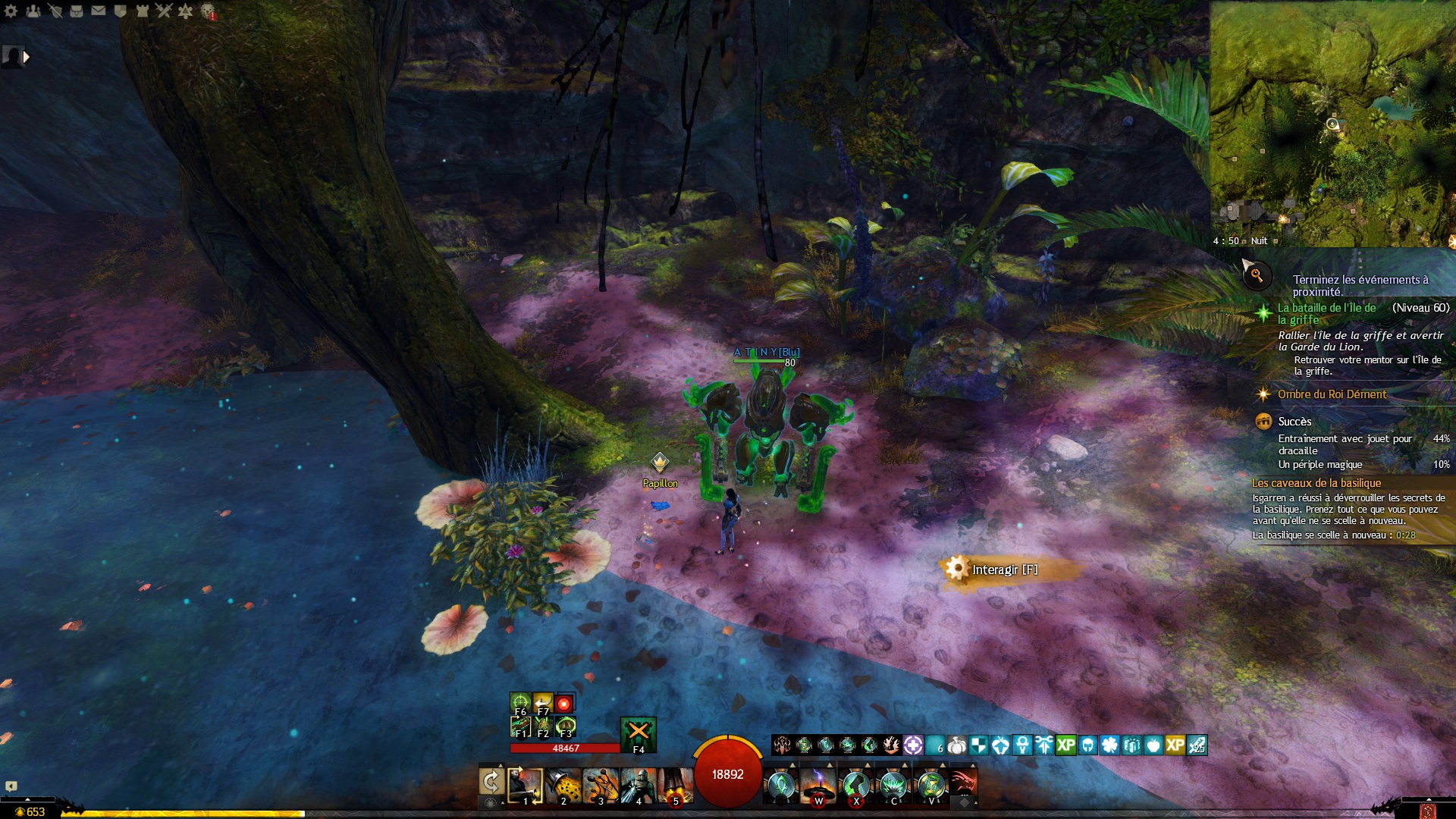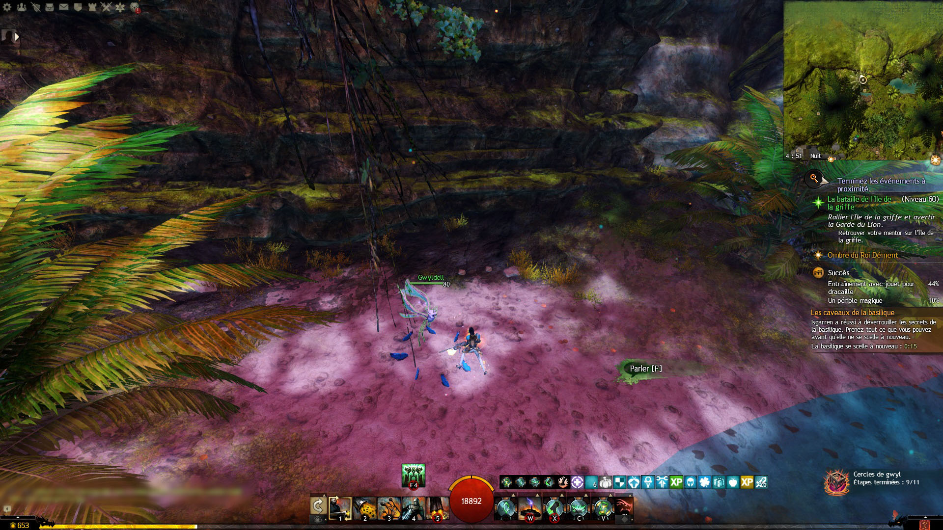 - dans la Grotte des esprits, au nord-ouest de la carte, prendre un papillon au sol et le ramener au cercle de l'autre côté de la marre (l'accès à cette zone se fait de 2 manières : la première est de terminer le chaîne d'évènements de la Basilique perdue et de sortie par les égoûts avec un embranchement disponible à gauche sur votre trajet de sortie, la seconde est d'emprunter un tunnel sous-marin depuis les Chutes sanglotantes situées à l'est de la Grotte des esprits)